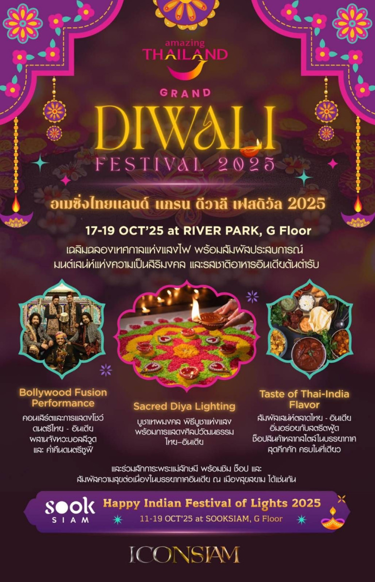 ไอคอนสยาม แลนด์มาร์กระดับโลกริมแม่น้ำเจ้าพระยา สร้างปรากฏการณ์ความประทับใจอีกครั้งกับความสำเร็จของงาน “AMAZING THAILAND GRAND DIWALI FESTIVAL 2025” เทศกาลแห่งแสงสว่างสุดยิ่งใหญ่ประจำปี โดยเป็นความร่วมมือระหว่าง สมาคมอินเดียแห่งประเทศไทย (Indian Association of Thailand: IAT), การท่องเที่ยวแห่งประเทศไทย (ททท.), กรุงเทพมหานคร, กระทรวงวัฒนธรรม, ภารตะช้อยส์ (Bharat Choice) และมิตรแท้ประกันภัย ที่ร่วมกันถ่ายทอดพลังแห่งศิลปะ วัฒนธรรม และมิตรภาพระหว่างไทย–อินเดีย ได้อย่างงดงามและทรงพลัง ซึ่งจัดขึ้นระหว่างวันที่ 17–19 ตุลาคม 2568 ณ ริเวอร์ พาร์ค ชั้น G ไอคอนสยาม