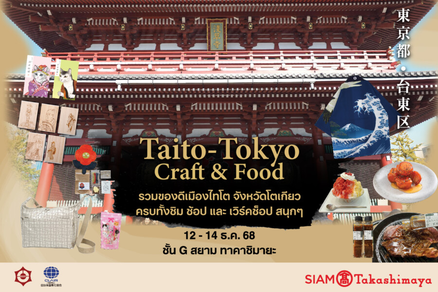 สัมผัสและเป็นเจ้าของสุดยอดสินค้าคุณภาพที่เต็มไปด้วยจิตวิญญาณและอารยธรรมญี่ปุ่นแท้ๆ ได้ที่งาน “Taito – Tokyo Craft & Food” วันที่ 12 – 14 ธันวาคม 2568 ณ ชั้น G สยาม ทาคาชิมายะ ณ ไอคอนสยาม สนใจสอบถามข้อมูลเพิ่มเติม โทร 02-011-7500 หรือ Facebook และ LINE SIAM Takashimaya