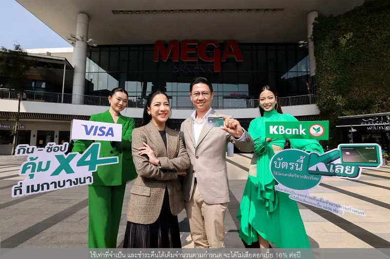 วรรณวิมล อรดีดลเชษฐ์ ผู้อำนวยการฝ่ายการตลาด ศูนย์การค้าเมกาบางนา และ พิพัฒน์ เหล่าพิพัฒนา ผู้อำนวยการฝ่าย Credit Card Product and Marketing Management Department ธนาคารกสิกรไทย ร่วมมอบสิทธิพิเศษสุดคุ้มให้กับผู้ถือบัตรเครดิตวีซ่ากสิกรไทย กับแคมเปญ “กิน-ช้อป คุ้ม X4 ที่เมกาบางนา*” ตั้งแต่วันที่ 5 มกราคม 2569 – 31 มีนาคม 2569 ยกระดับประสบการณ์ความสุขที่ตอบโจทย์ทุกไลฟ์สไตล์การใช้ชีวิตของลูกค้า ทั้งการรับประทานอาหาร การช้อปปิ้ง ผ่านสิทธิประโยชน์สุดคุ้ม 4 ต่อ เฉพาะที่เมกาบางนาเท่านั้น