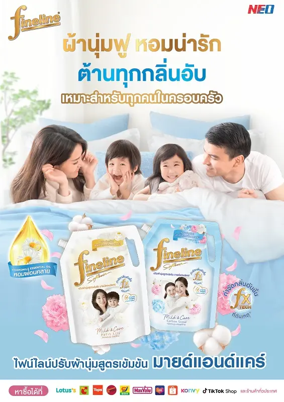 ไฟน์ไลน์ (Fineline) ผู้นำผลิตภัณฑ์ดูแลผ้าครบทุกขั้นตอน หนึ่งในแบรนด์สินค้าคุณภาพภายใต้ บริษัท นีโอ คอร์ปอเรท จำกัด (มหาชน) บริษัทสินค้าอุปโภคสัญชาติไทย คุณภาพระดับสากล เดินหน้าตอกย้ำความเชี่ยวชาญในตลาดผลิตภัณฑ์ปรับผ้านุ่มและภาพลักษณ์ความหอมระดับพรีเมียมที่ครองใจผู้บริโภคมายาวนาน ด้วยการมอบประสบการณ์ความหอมครั้งใหม่ ที่ชวนสัมผัสความนุ่มฟู หอมละมุน อ่อนโยน ใช้ได้กับทุกคนในครอบครัว พร้อมจัดการเรื่องกลิ่นอับได้แบบอยู่หมัด กับผลิตภัณฑ์ใหม่ล่าสุด “ไฟน์ไลน์ปรับผ้านุ่มเข้มข้น มายด์ แอนด์ แคร์”