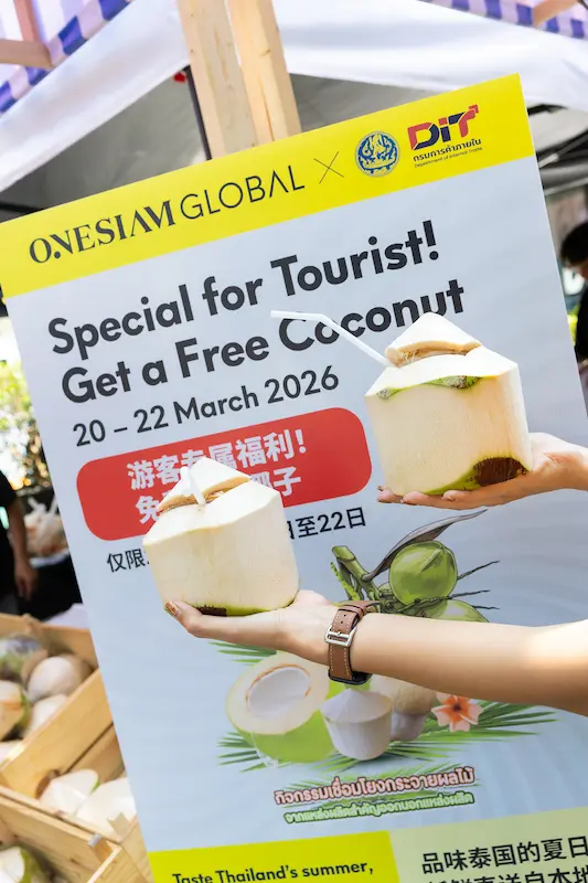 พิเศษ เพื่อส่งเสริมการท่องเที่ยวและสร้างความประทับใจแก่นักท่องเที่ยว สยามเซ็นเตอร์และสยามดิสคัฟเวอรี่มอบโปรโมชั่นพิเศษสำหรับนักท่องเที่ยวต่างชาติ เพียงแสดงใบเสร็จจากสยามเซ็นเตอร์ หรือสยามดิสคัฟเวอรี่ ที่มียอดใช้จ่ายขั้นต่ำ 1,000 บาท รับมะพร้าวฟรี! เพื่อสัมผัสประสบการณ์ผลไม้ไทยสดใหม่จากแหล่งผลิต