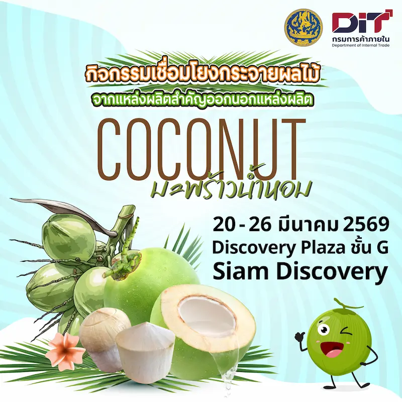 ขอเชิญชวนประชาชนและผู้ที่สนใจร่วมอุดหนุนผลไม้ไทยคุณภาพ พร้อมสนับสนุนเกษตรกรไทยโดยตรงได้ในกิจกรรมเชื่อมโยงกระจายผลไม้ จากแหล่งผลิตสำคัญออกนอกแหล่งผลิต ระหว่างวันที่ 20-26 มีนาคม 2569 ณ ดิสคัฟเวอรี่ พลาซ่า สยามดิสคัฟเวอรี่ ใจกลางสยาม ซึ่งถือเป็นอีกหนึ่งกิจกรรมสำคัญที่ช่วยขับเคลื่อนเศรษฐกิจ และสร้างความยั่งยืนให้กับภาคการเกษตรของไทยในระยะยาว