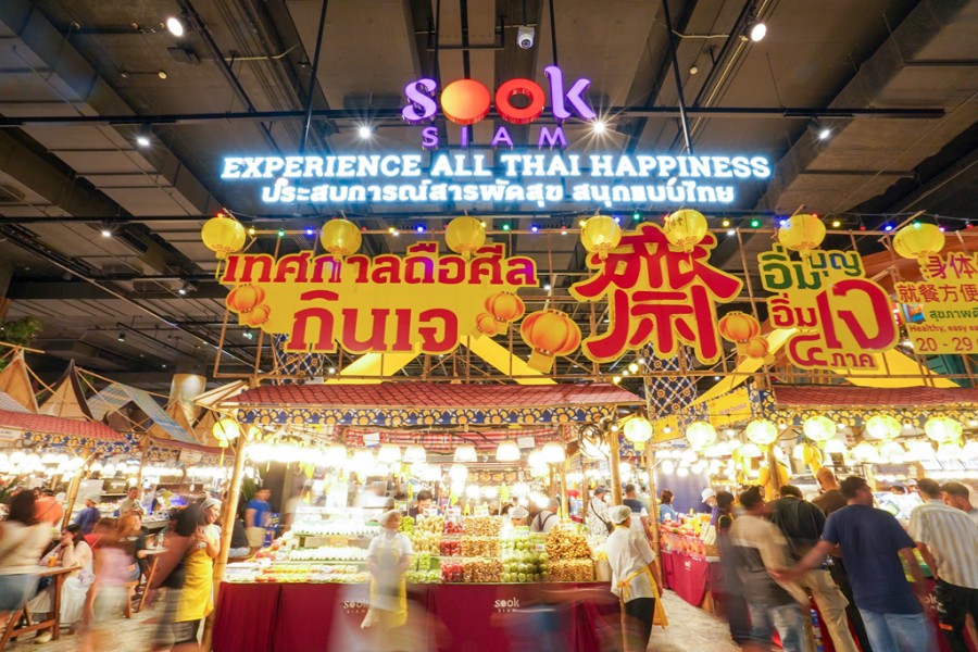 ในวันนี้ (20 ต.ค.) เมืองสุขสยามได้จัดพิธีเปิดงานต้อนรับเทศกาลกินเจในงาน อิ่มบุญ อิ่มเจ 4 ภาค โดยได้รับเกียรติจากคุณนันทญา เขียวแสวง ผู้ช่วยผู้อำนวยการเขตคลองสาน ประธานในพิธี คุณบัญชา ฉันทดิลก กรรมการผู้จัดการโครงการสุขสยาม, คุณปัณณิตา วรรณโกวิท ผู้ช่วยผู้อำนวยการฝ่ายกิจกรรมการตลาด บริษัท ไอคอนสยาม จำกัด พร้อมด้วยพันธมิตร ร่วมทำพิธีสักการะ พระโพธิสัตว์กวนอิม ปางพันกร หลังจากนั้นเข้าสู่พิธีเปิดงานอย่างเป็นทางการ