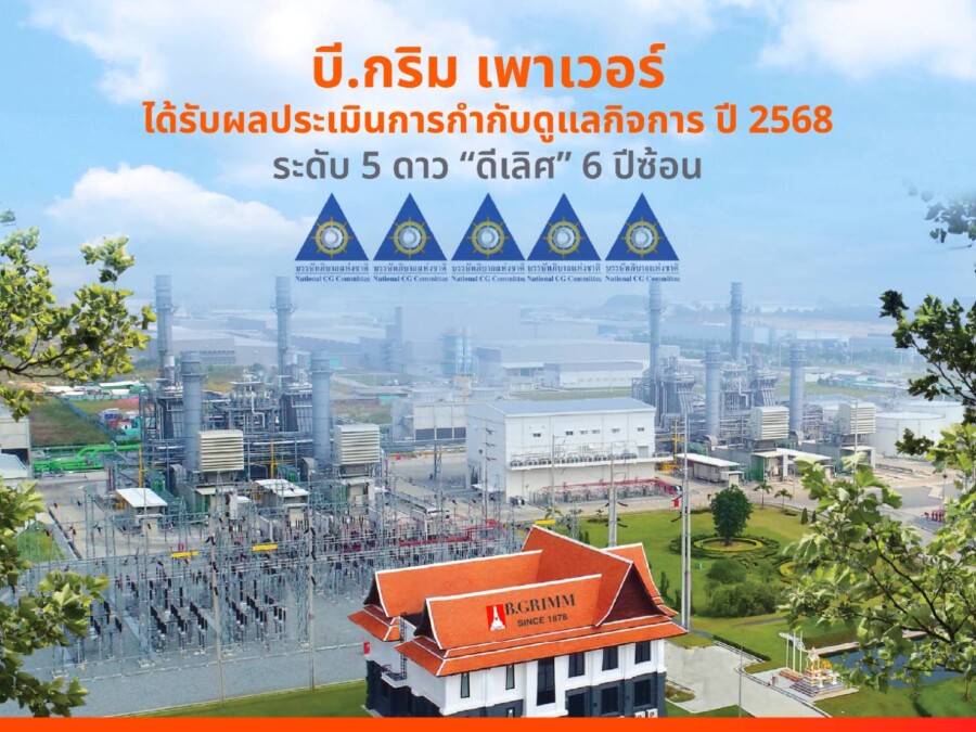 บริษัท บี.กริม เพาเวอร์ จำกัด (มหาชน) หรือ BGRIM ได้รับการประเมินจากโครงการสำรวจการกำกับดูแลกิจการของบริษัทจดทะเบียน (CGR) ประจำปี 2568 ซึ่งจัดขึ้นโดยสมาคมส่งเสริมสถาบันกรรมการบริษัทไทย (IOD) ภายใต้การสนับสนุนของตลาดหลักทรัพย์แห่งประเทศไทย และสำนักงานคณะกรรมการกำกับหลักทรัพย์และตลาดหลักทรัพย์ ในระดับ “ดีเลิศ” (5 ดาว) ต่อเนื่องเป็นปีที่ 6 ตอกย้ำการดำเนินธุรกิจด้วยความโปร่งใสภายใต้วิสัยทัศน์ “สร้างพลังให้กับสังคมโลกด้วยความโอบอ้อมอารี” (Empowering the World Compassionately) โดยยึดมั่นในหลักการกำกับดูแลกิจการที่ดี