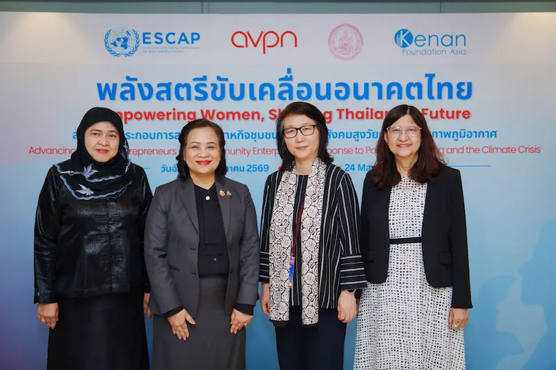 เมื่อวันอังคาร ที่ 24 มีนาคม พ.ศ. 2569 มูลนิธิคีนันแห่งเอเซีย ร่วมกับกรมกิจการสตรีและสถาบันครอบครัว และคณะกรรมการเศรษฐกิจและสังคมแห่งเอเชียและแปซิฟิก (ESCAP) จัดงานประชุม “พลังสตรีขับเคลื่อนอนาคตไทย: เวทีระดับชาติว่าด้วยการส่งเสริมผู้ประกอบการสตรีและวิสาหกิจชุมชน เพื่อรับมือสังคมสูงวัยและวิกฤตสภาพภูมิอากาศ” โดยมีผู้เข้าร่วมกว่า 105 คน จากภาคีเครือข่ายกว่า 42 หน่วยงาน โดยได้รับข้อเสนอสำคัญ 3 ข้อ ได้แก่